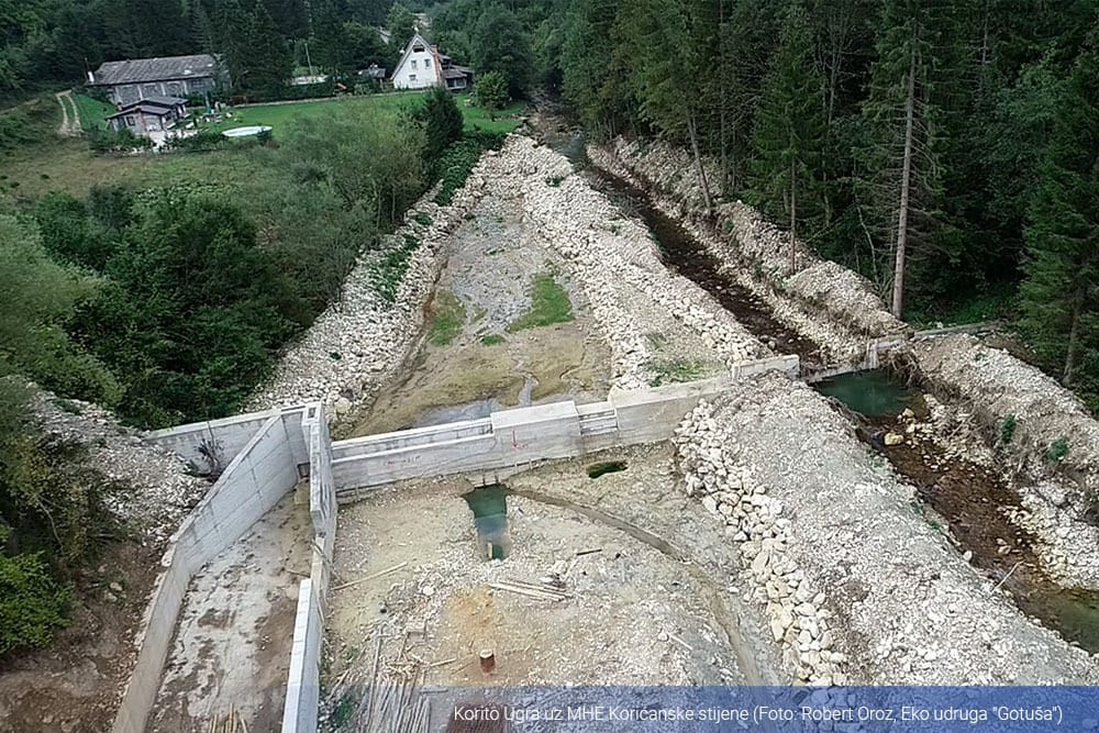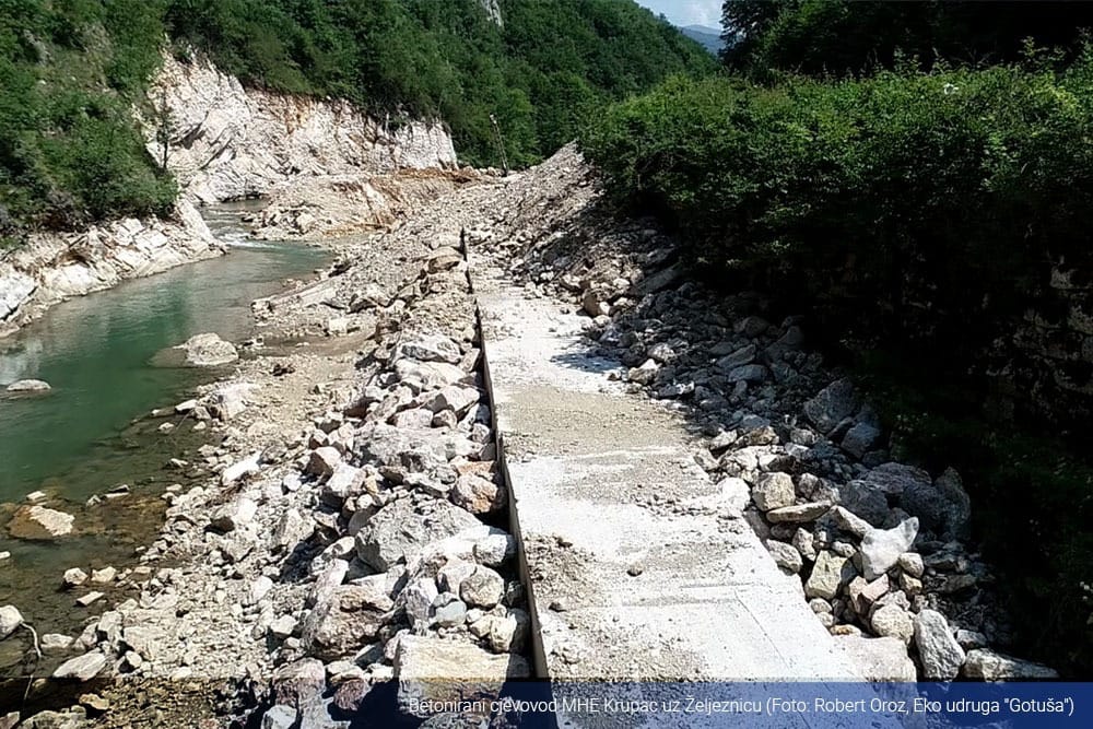 Authorities in BiH generally issue permits for the construction of SHPPs whose powerhouses are being built downstream of the dam and the water is flowing through a pipe. The riverbeds should retain a sufficient volume of water to maintain normal life in the river, but this is often not the case because no checks are made on the environmentally acceptable flow of water in the riverbed when issuing construction permits.
