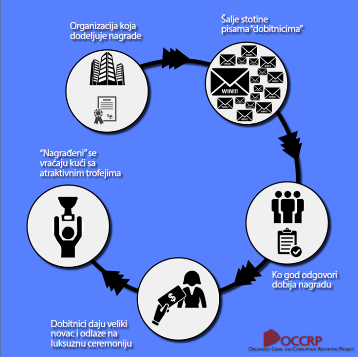 Organizacije koje dodjeljuju priznanja se obično nalaze u zemljama Evropske unije, a nagradama trguju u zemljama u razvoju, među kojima su i one iz regiona. Operišu na sličan način i ne objavljuju puno informacija o sebi. Novinari OCCRP-a su identifikovali šest takvih organizacija.