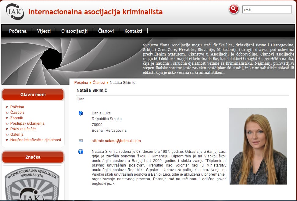 In the end the job went to Nataša Sikimić who graduated from the Banja Luka Police Academy in 2009, and was a volunteer for the Academy and for the Association of Criminologists, but never worked for media. She said has applied unsuccessfully before for jobs with state police agencies before.. She is the co-author of a paper with UroŠ Pena, deputy director of the bureau and a former student of his.