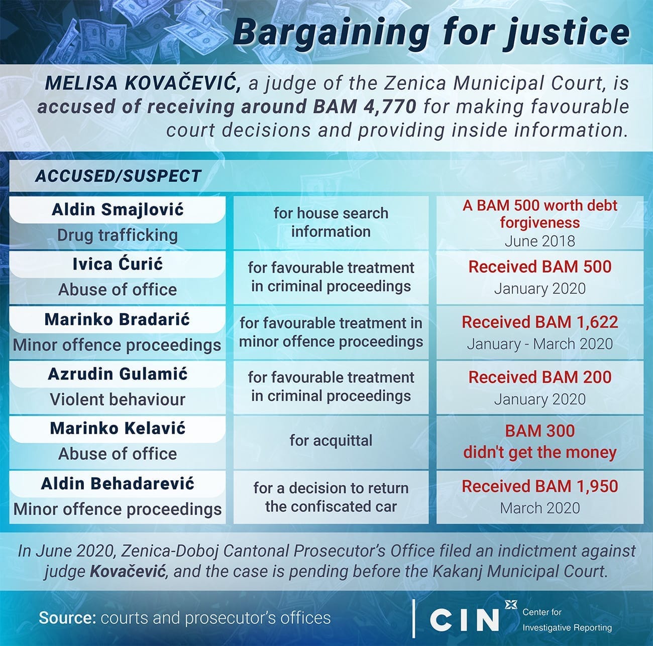 It took only a bribe of few hundreds convertible marks (BAM) to have Melisa Kovačević, a judge of the Zenica Municipal Court, acquit Ivica Ćurić, a former minister in the Zenica-Doboj Canton (ZDK) government. He was on trial for unlawful employment.