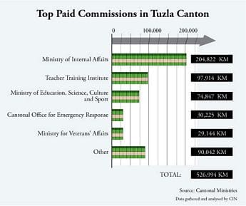 In 2003, the Tuzla, cantonal government decided that one person could not sit on more than two commissions and it set maximum commission payments at 200 KM for a president, 150 KM for a member and 100 KM for a secretary.