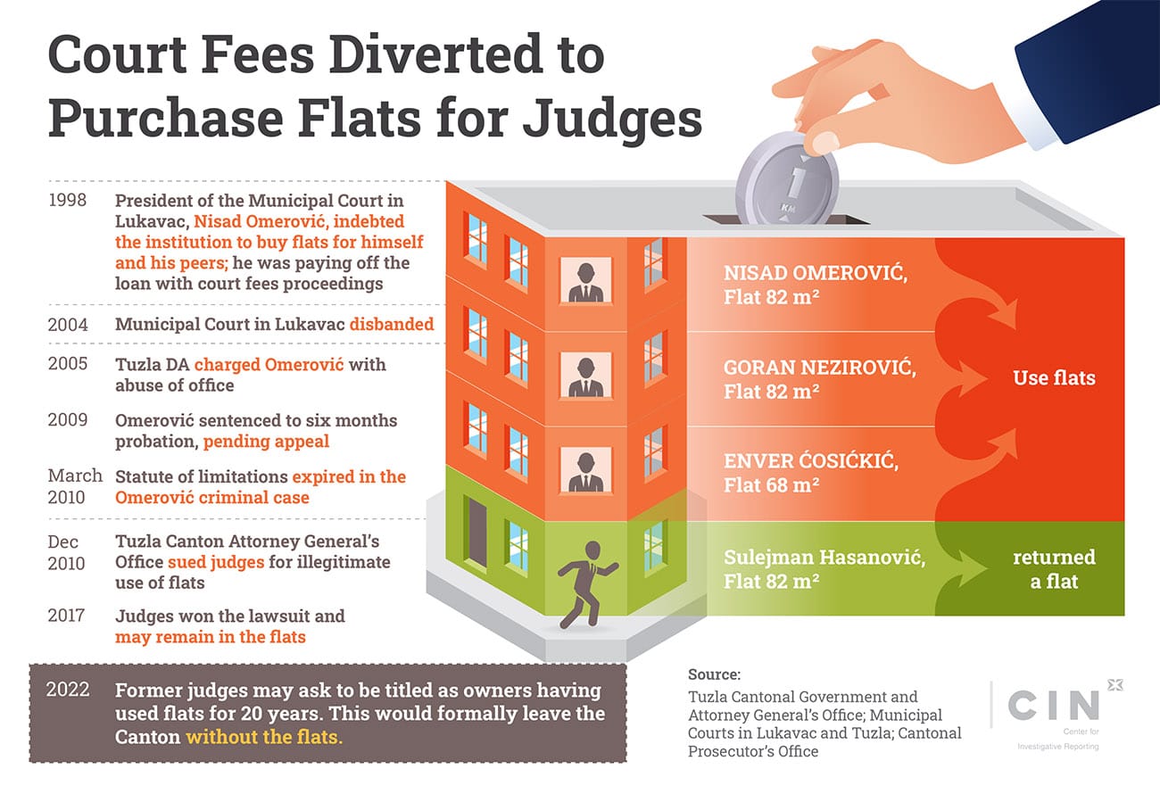 Way back in 2005, the Tuzla Cantonal Prosecutor’s Office accused the former Court President Omerović of using money from court fees to pay back the loan with which he had bought apartments for himself and other judges. Because the court fees were not deposited into the Tuzla Cantonal government budget, as required by law, the prosecutors charged him with abuse of office.