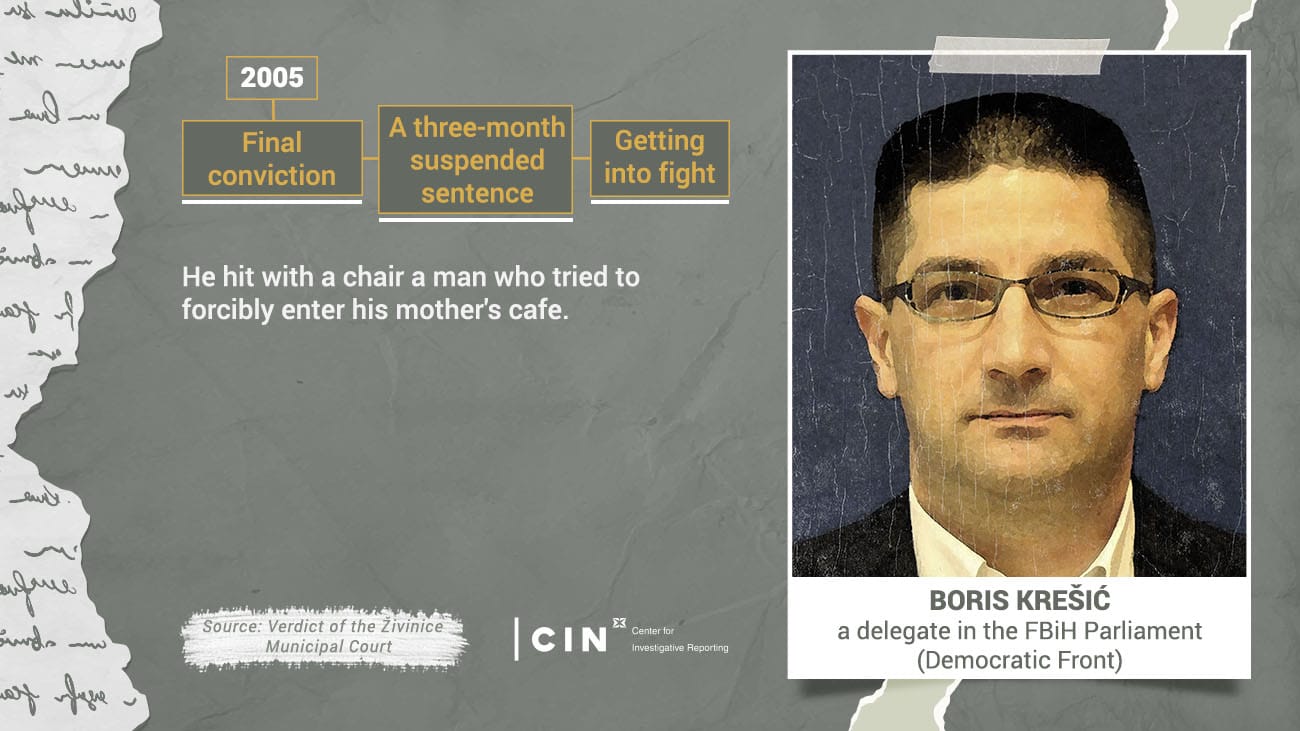 In its story “Legislators On The Other Side Of The Law” about convicted parliamentarians in FBiH CIN wrote that a delegate in the FBiH Parliament and a professor at the Law School in Tuzla, Boris Krešić, was sentenced to a suspended one-year prison sentence for participating in a fight.