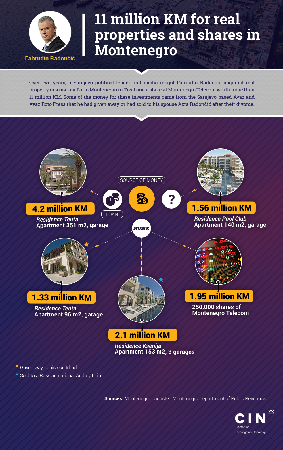 Over the course of two years, a Sarajevo political leader and a media mogul Fahrudin Radončić has acquired properties and company shares in Montenegro worth more than 11 million KM — four luxurious apartments in Porto Montenegro marina in Tivat and a stake in Montenegro Telecom.