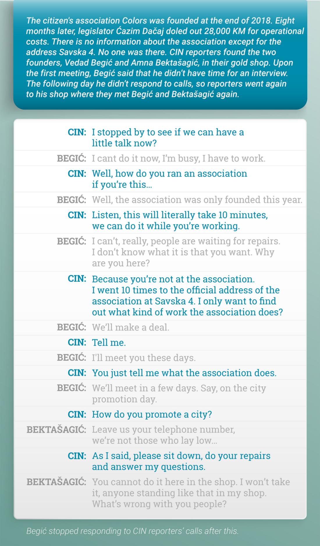 Zahirović and Ražanica have met on several occasions with CIN reporters who faced them with details about controversial spending, but the pair refused to talk about it.