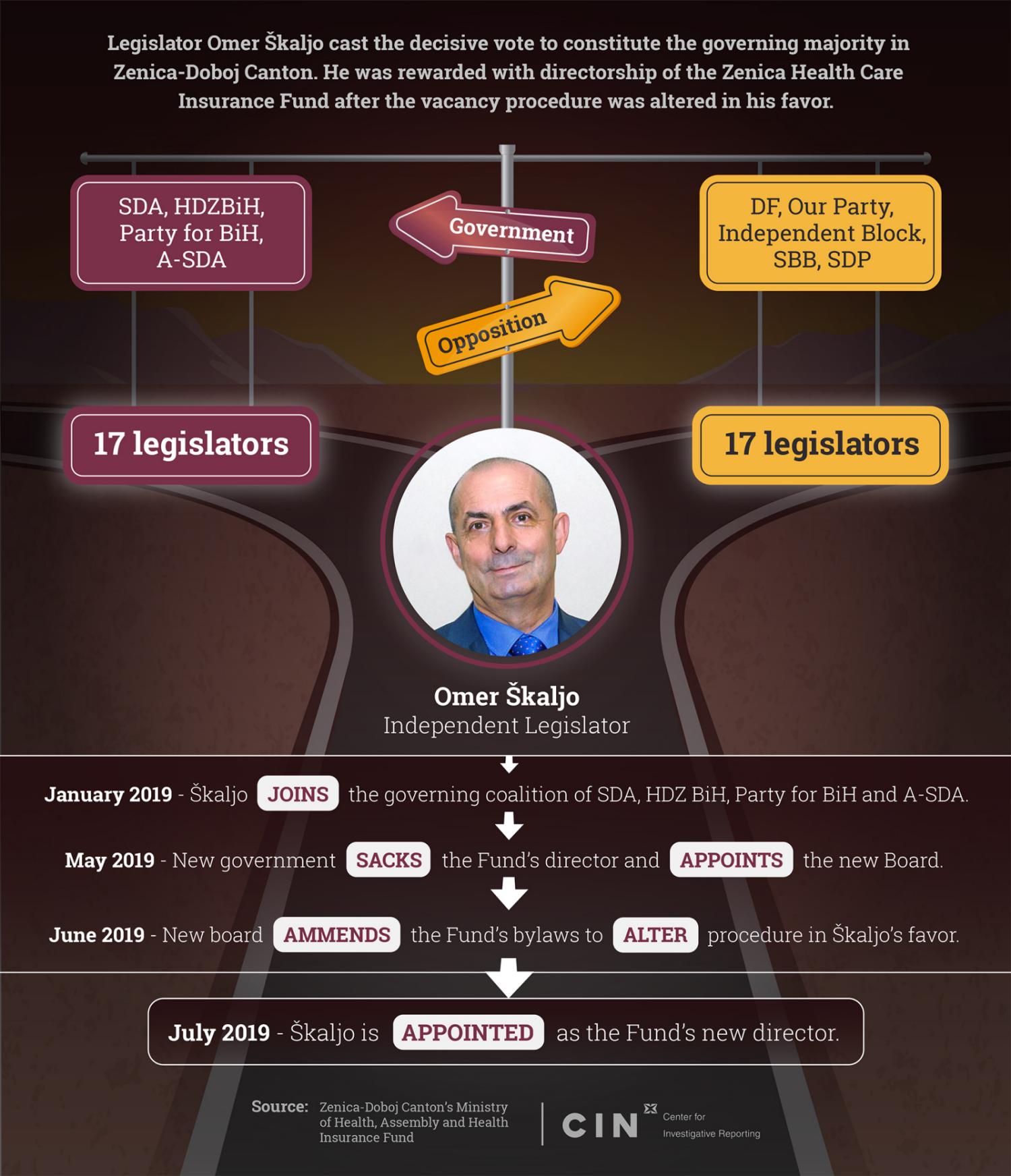 Škaljo was appointed the Fund’s head after he cast a decisive vote for the constitution of the Cantonal government. In order to return him a favor, the new government modified the Fund’s vacancy procedure so that he could become a director of the institution in charge of 190 million KM of taxpayer money.