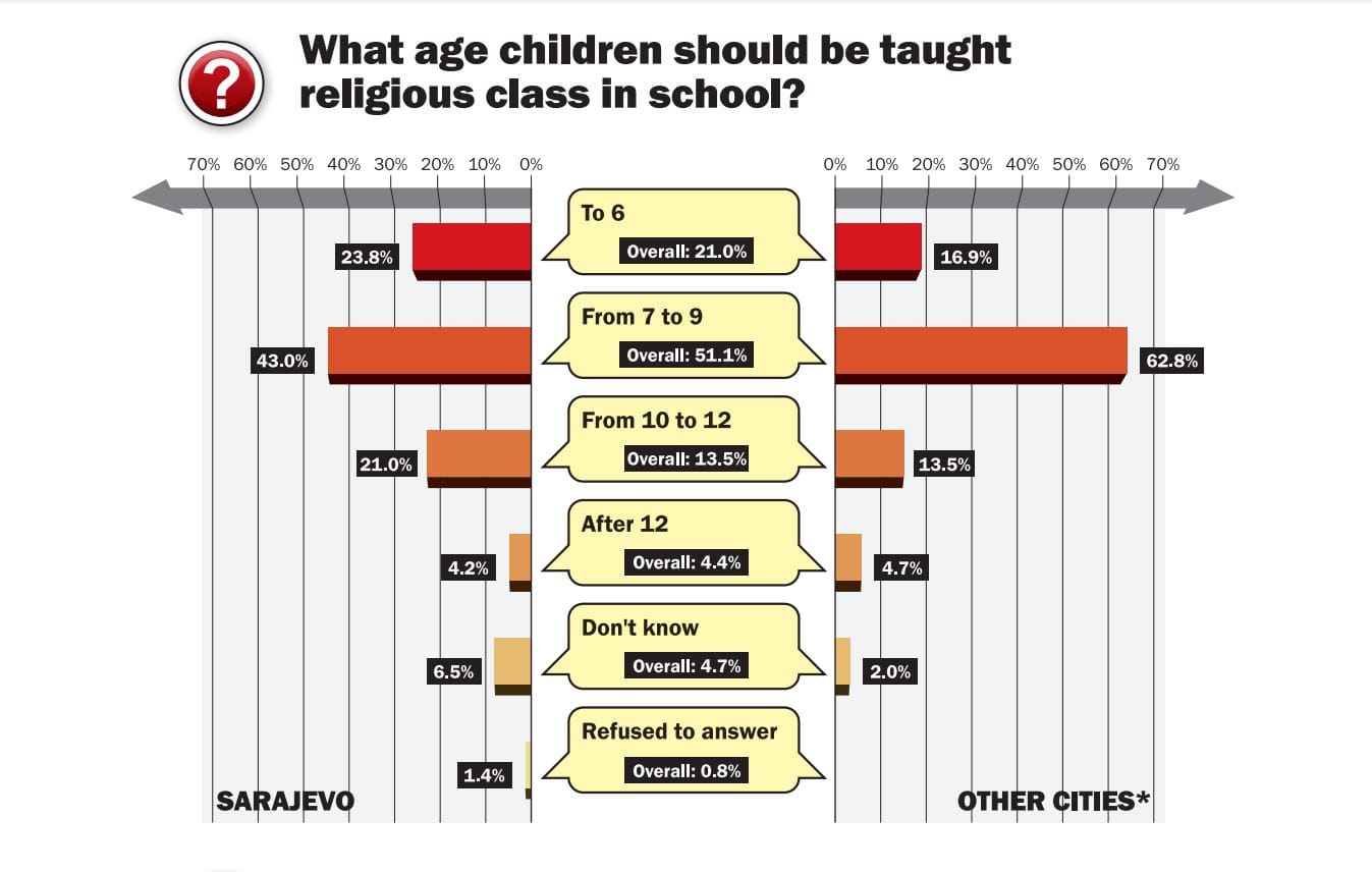 The results of a random poll by an independent polling organization were sought in light of an ongoing dispute in Sarajevo among parents, professionals and officials about offering classes—only in Islam― to kindergartners and paying part of the cost from the Canton of Sarajevo’s budget.