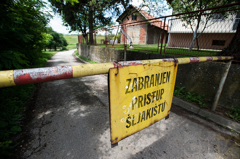 The road leading to Divkovići comes to a stop at a checkpoint barrier with a warning sign – Forbidden Access to Tailings. Here’s where the waste has been deposited for the past 30 years. One dump was closed 20 years ago. The other one remains in use.