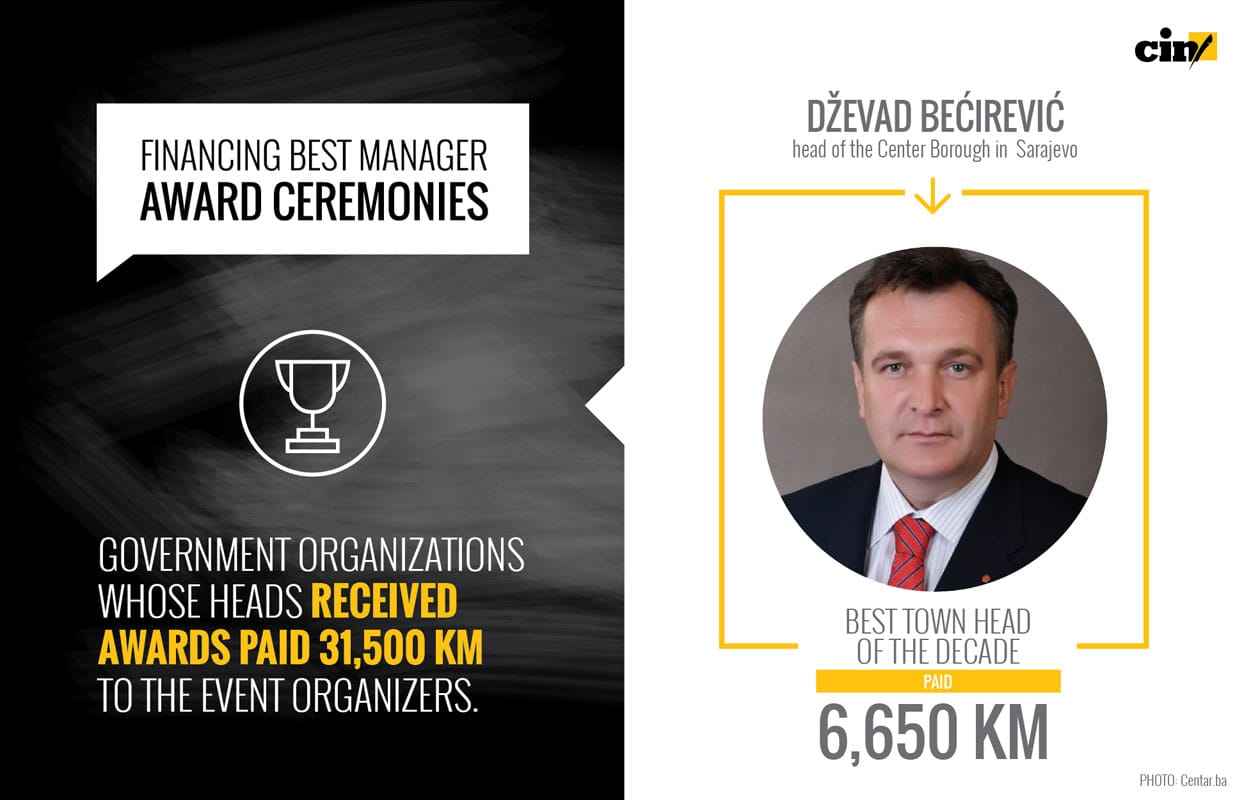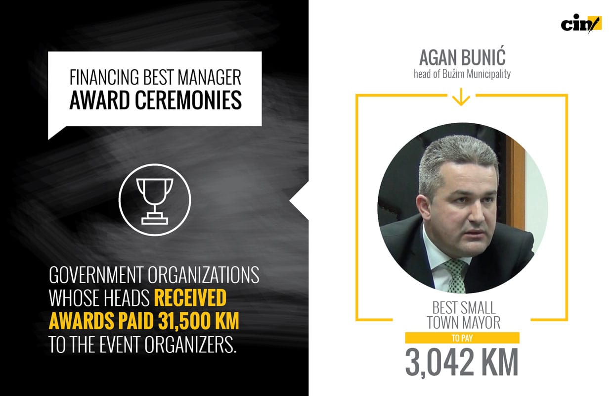 Another nine executives received certificates of recognition last year. An investigation by the Center for Investigative Reporting in Sarajevo (CIN) found that award ceremonies were financed with at least 31,500 KM in taxpayer money they had overseen.