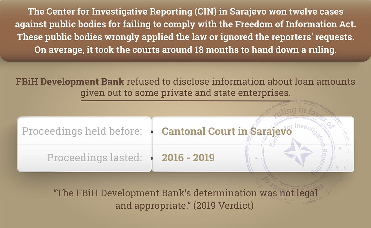 Every year, by citing state and entity laws on freedom of access to information, CIN reporters collect government records they use to uncover misuses of public funds. Based on journalists’ work, the authorities initiate numerous investigations and file indictments. Reporters’ work has also led to changes in the legislation. Public bodies are inconsistent in the practice of law and its application – while some disclose all requested records, the others search for ways to avoid this.