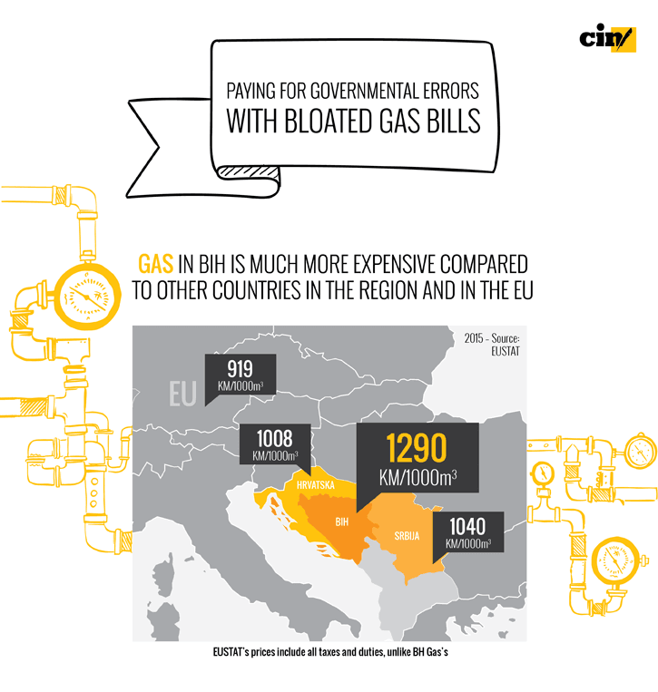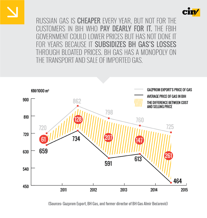 The Center for Investigative Reporting in Sarajevo (CIN) has interviewed experts who say the company’s clients pay exorbitant prices and, in effect, subsidize the corporation’s losses. Over the past six years, local firms have paid up to 37 percent more than their counterparts in Serbia, Croatia and the EU for natural gas.