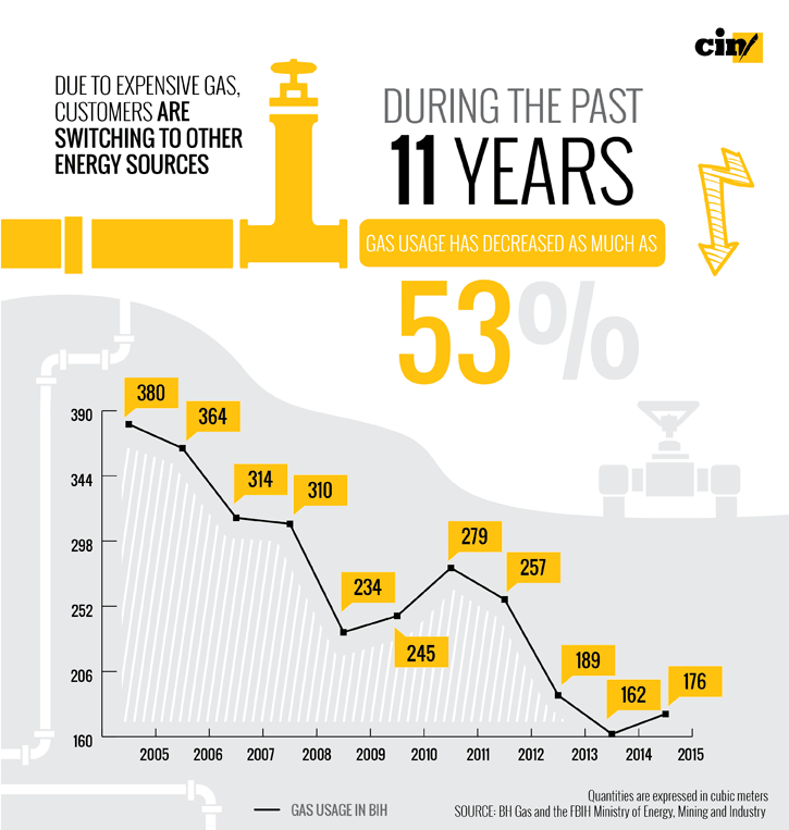 In December 2015, the price of 1,000 cubic meters of gas was 311 KM at stock exchanges in Vienna and Budapest. That amount of gas is sufficient to heat a 65-square-meter apartment for a year.