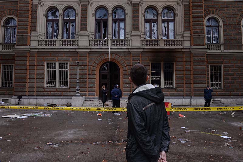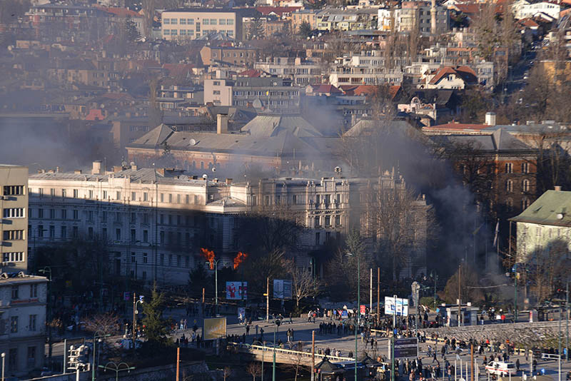 This is the upshot of the ongoing protests of the citizens of Tuzla, Sarajevo, Zenica, Bihać, Mostar and other Bosnia and Herzegovina (BiH) towns. Media reports estimate that around two hundred persons were injured including police officers and journalists. The protesters have set on fire the buildings of the cantonal governments in Tuzla, Sarajevo, Zenica and Mostar and the municipal seats in Tuzla and Sarajevo Center; the building of BiH Presidency that’s housing the state archive was also set ablaze as well as the City Hall in Mostar and the Mostar-based HQs’ of the main Croat and Bosniak parties. Demonstrators hurled stones on the buildings of the Cantonal and Municipal Court and the Prosecutor’s Office in Tuzla, while police and governments cars were wrecked in Sarajevo. Some of the protesters have been arrested and are still in custody.