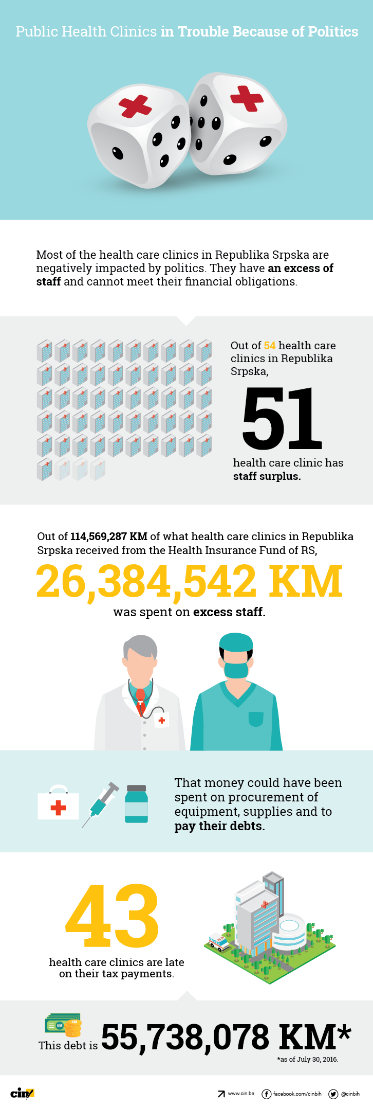 According to a CIN investigation, at least 30 current and former managers of health care clinics in the RS are political party members. At least nine have been directors and councilors at the same time, while 15 clinic’s directors will run at this year’s elections.
