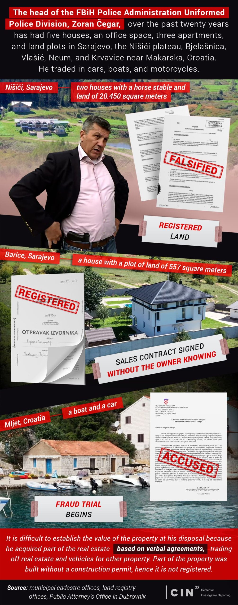The head of the FBiH Uniformed Police, Zoran Čegar, was accused of fraud in Croatia. Part of his property in Bosnia and Herzegovina was acquired illegally. CIN reveals that based on a falsified documents he took possession of other people's real estate.