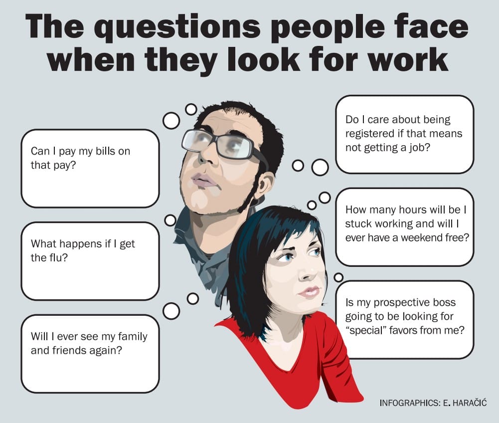 Elzana Mašović, the bar manager, said later that workers there were registered; she had just told the job applicant differently to get rid of a candidate she did not think was serious about the job.