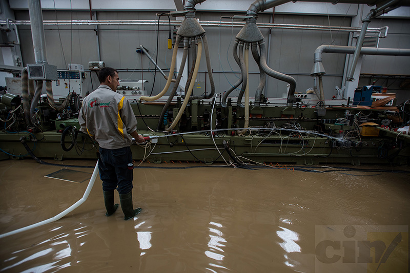 Novinari CIN-a posjetili su ovo preduzeće u augustu, dan nakon što su poplavljeni po drugi put ove godine. Tvornička hala je bila suha, ali se duž zida ocrtavao smećkasto-žuti trag koji je pokazivao da je voda bila na gotovo metar visine.