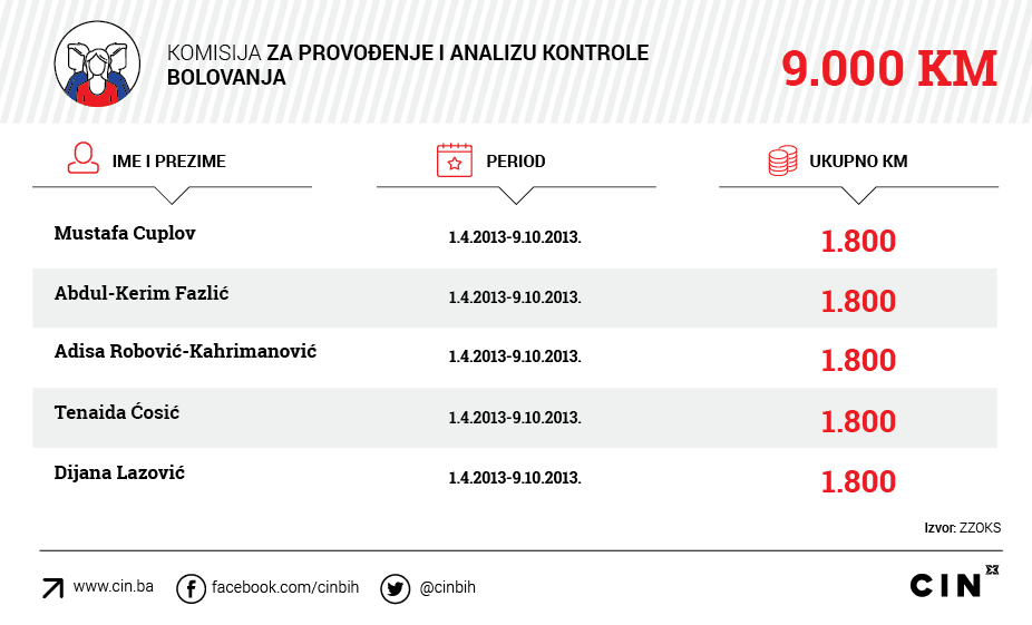 Godinu dana nakon osnivanja Komisija je razriješena i isti dan ponovo imenovana odlukom koju potpisuje predsjednik Upravnog odbora Zavoda Esed Radeljaš. U novi saziv Komisije su izabrani isti članovi, osim Đape. Gavrankapetanovića je pet mjeseci kasnije zamijenio novi direktor ZZO-a Kenan Crnkić. Članovima ove komisije je za tri i po godine isplaćeno 92.400 KM.