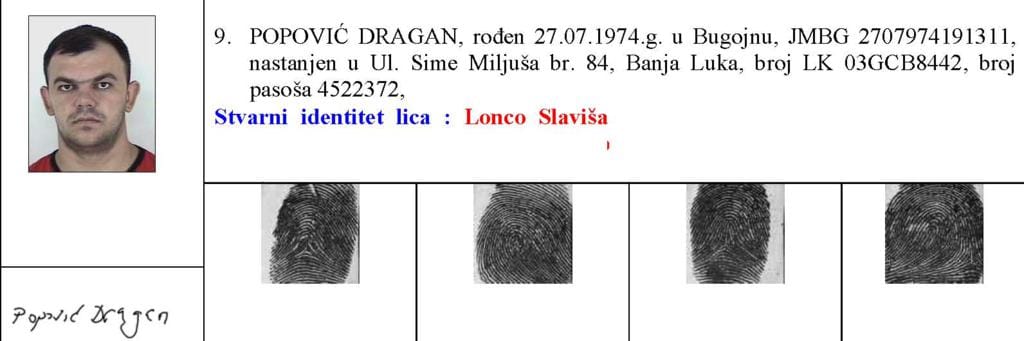 Među licima koja su pribavila lažne dokumente bio je i Loncin brat Slaviša koji je koristio lažno ime Dragan Popović.