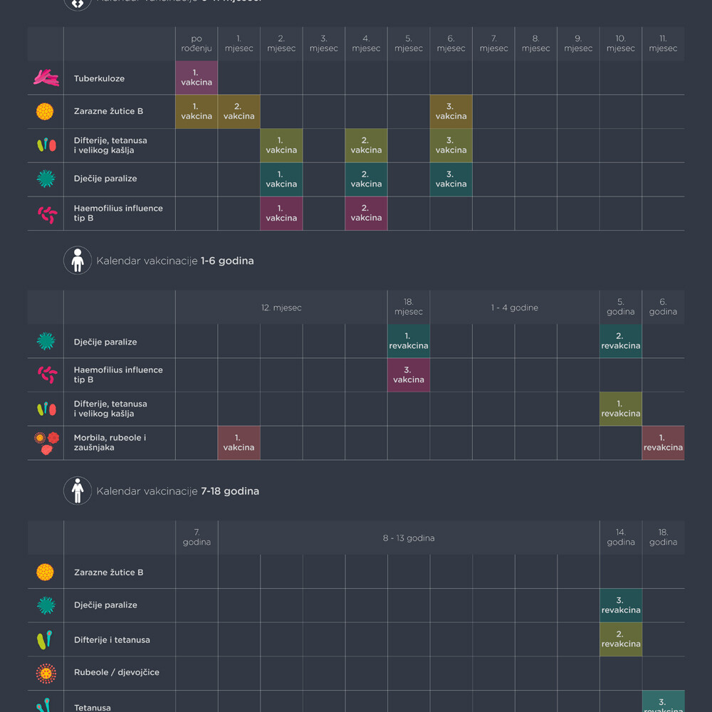 Do 18. godine djeca u BiH primaju vakcine protiv 10 bolesti, među kojima su: tuberkuloza, dječija paraliza, hepatitis i druge. Prema stručnoj literaturi, vakcinacija je potrebna kako bi se smanjila mogućnost zaraza, odnosno iskorijenile određene bolesti od kojih neke mogu imati smrtni ishod.