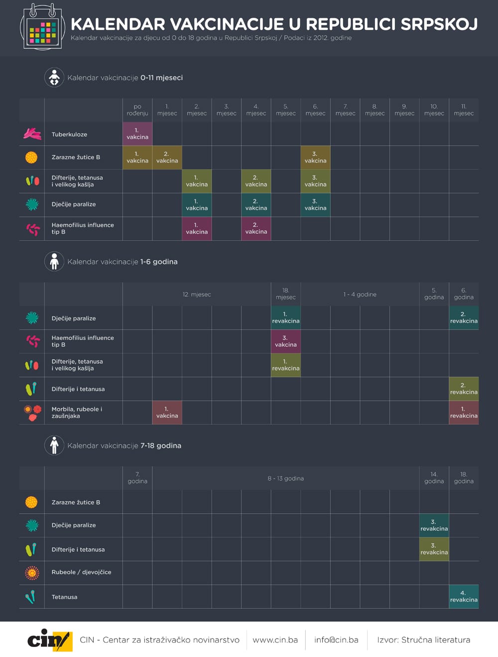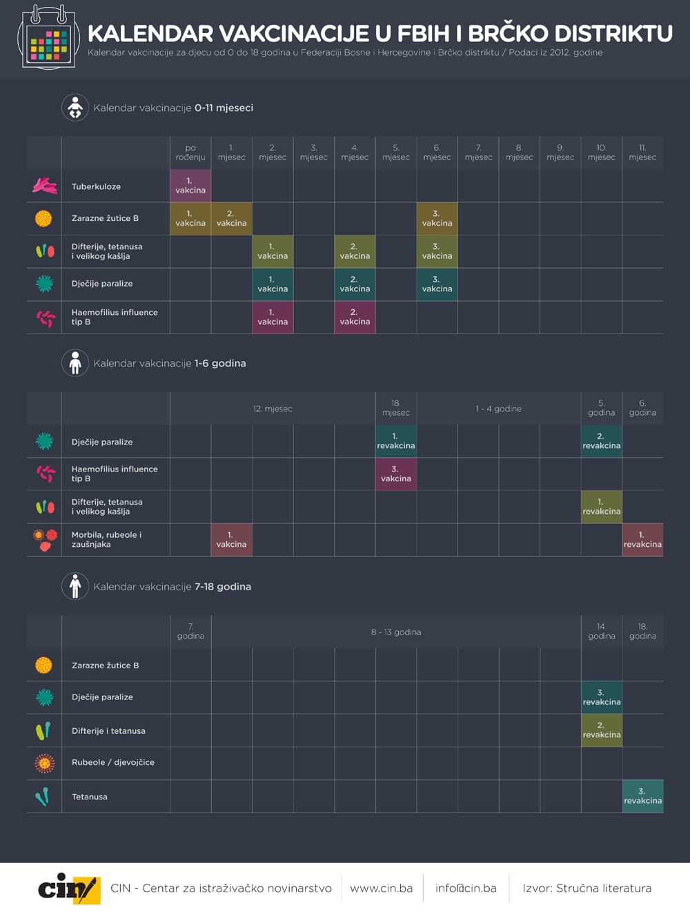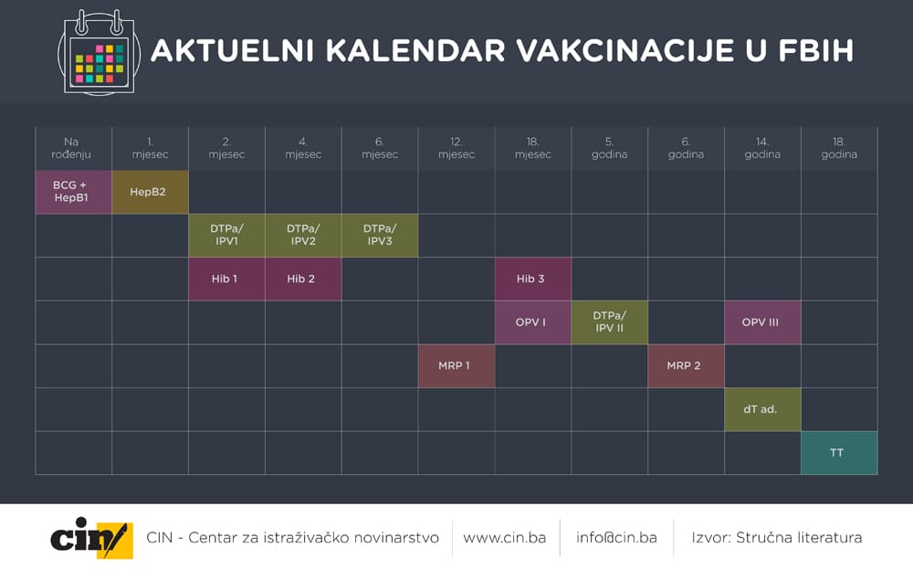 Do 18. godine djeca u BiH primaju vakcine protiv 10 bolesti, među kojima su: tuberkuloza, dječija paraliza, hepatitis i druge. Prema stručnoj literaturi, vakcinacija je potrebna kako bi se smanjila mogućnost zaraza, odnosno iskorijenile određene bolesti od kojih neke mogu imati smrtni ishod.