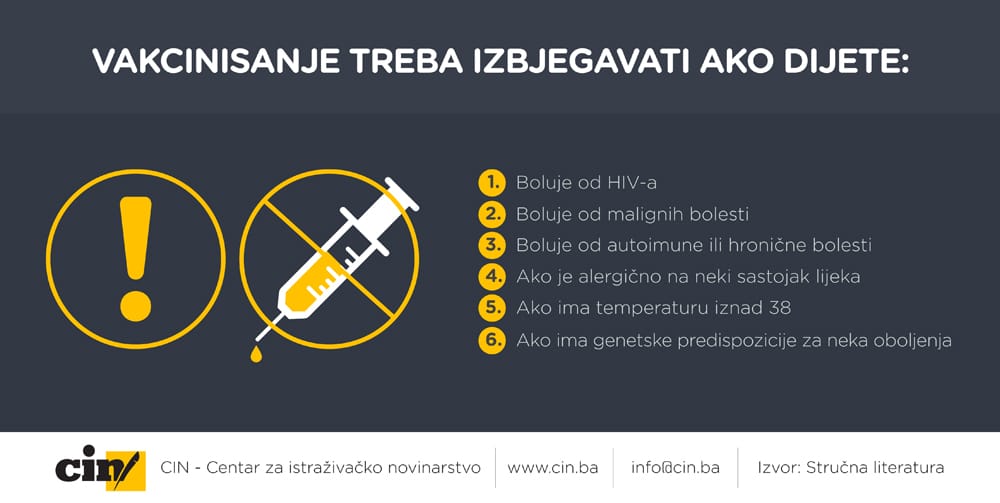Troje stručnjaka s kojima su novinari CIN-a razgovarali kažu da do komplikacija može doći ukoliko je dijete alergično na određeni sastojak vakcine, ako ima problem u imunološkom sistemu ili genetske predispozicije.