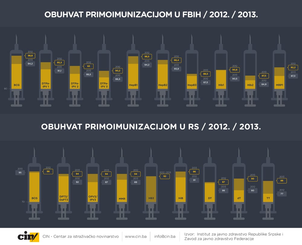 Da bi stanovništvo bilo zaštićeno od zaraznih bolesti, neophodno je da bude vakcinisano od 93 do 95% stanovništva. Ukoliko je procenat vakcinisanih niži, to je veći rizik od širenja zaraznih bolesti. Statistika pokazuje da se u BiH smanjuje stopa vakcinisane djece. Podaci Zavoda za javno zdravstvo FBiH i Instituta za javno zdravstvo RS-a pokazuju da je vakcinisanost stanovništva na pojedine bolesti ispod 90%, a kod revakcinacije taj postotak je ispod 70%.