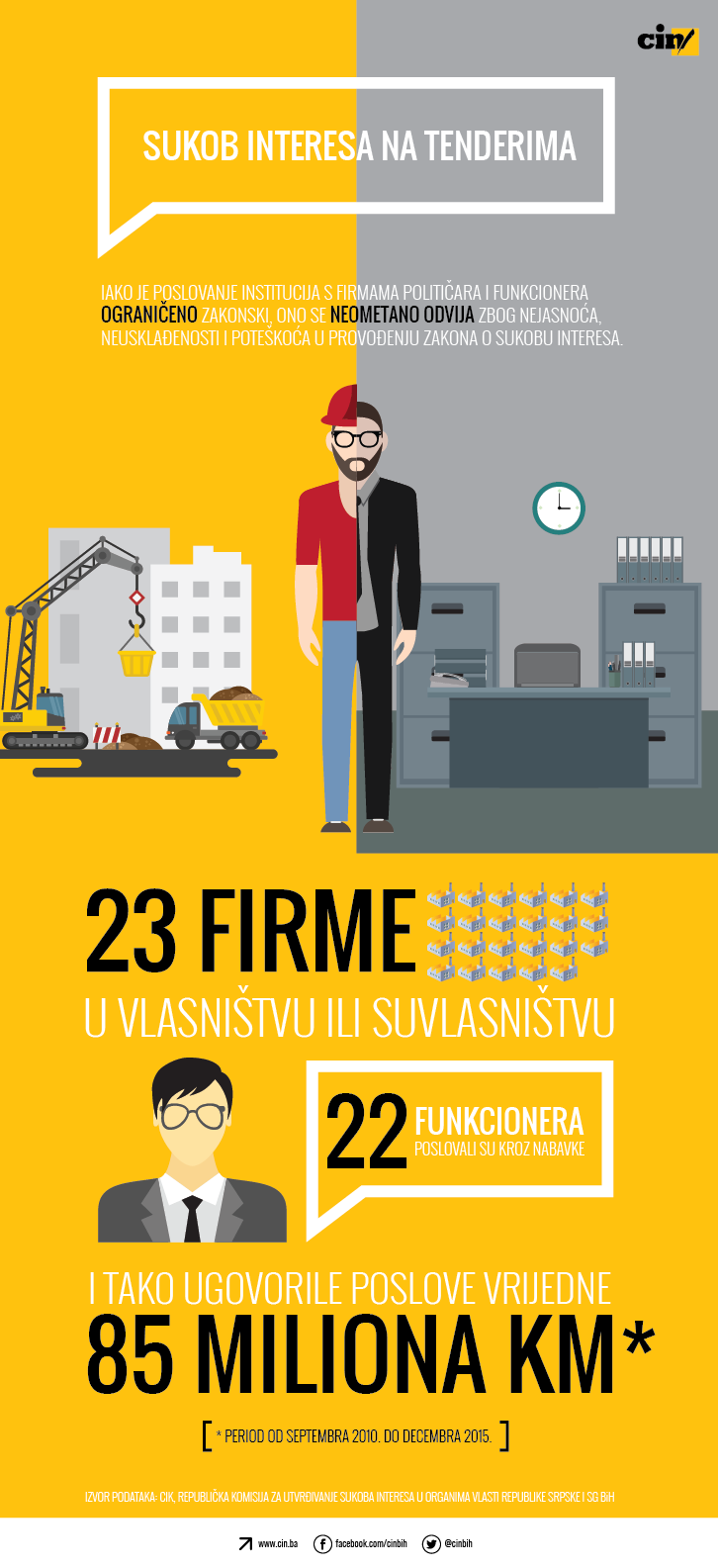 Za funkcionere koji su radili u državnim, federalnim i institucijama Brčko distrikta vrijedili su strožiji zakoni koje je do novembra 2013. godine provodila Centralna izborna komisija (CIK). Prema ovim zakonima, vrijednost ugovorenog posla privatnih preduzeća sa institucijama koje su finansirane iz budžeta nije smjela prelaziti sumu od 5.000 KM, a zabrana se odnosila i na preduzeća u kojima su funkcioneri vlasnici.
