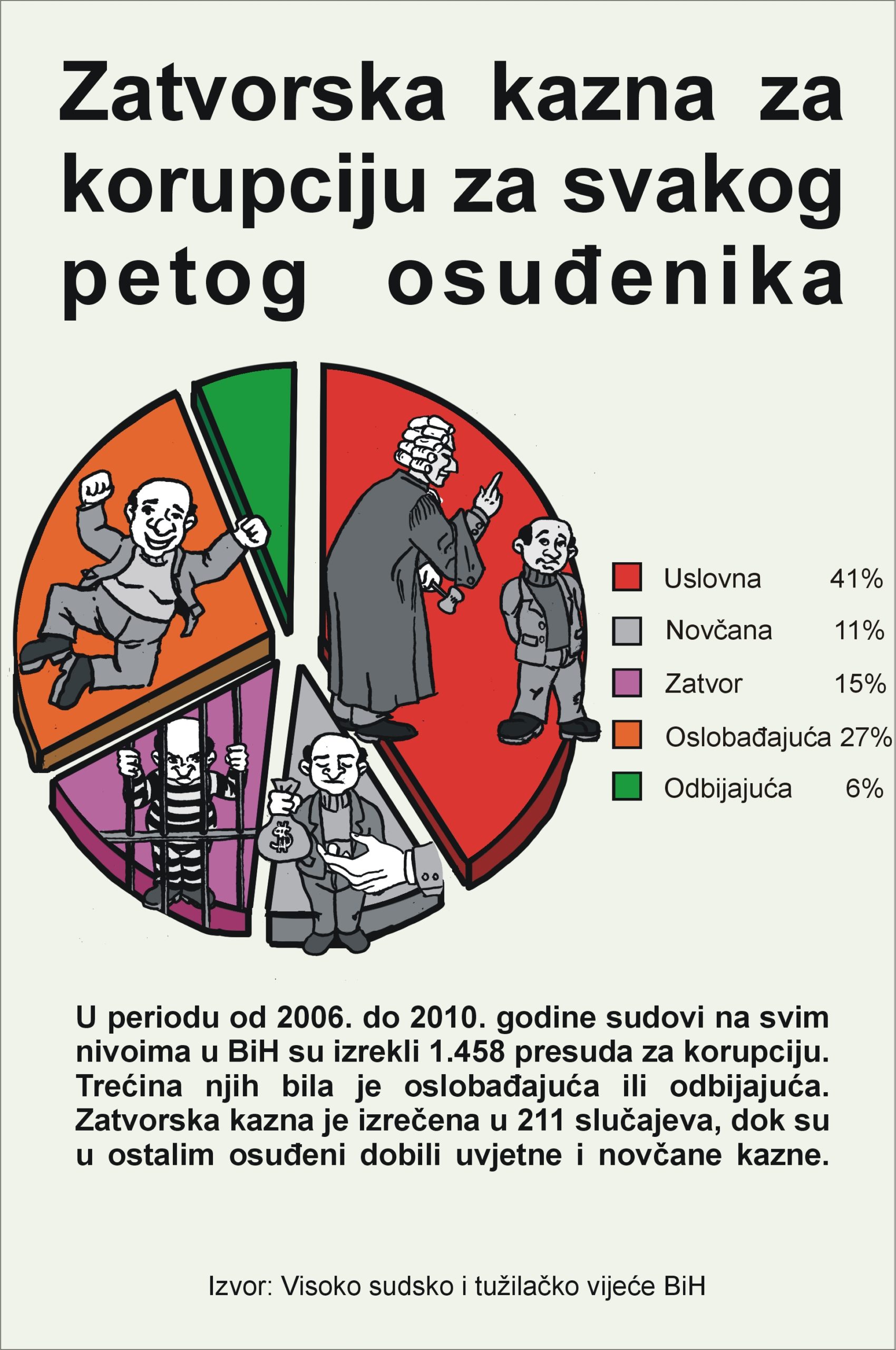 Zatvorsku kaznu za korupciju u Bosni i Hercegovini (BiH) dobije tek svaki peti osuđenik, iako je ona propisana zakonom za većinu koruptivnih djela.