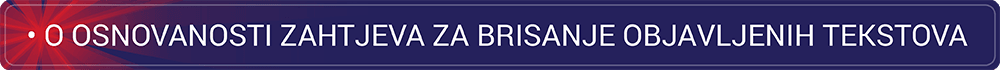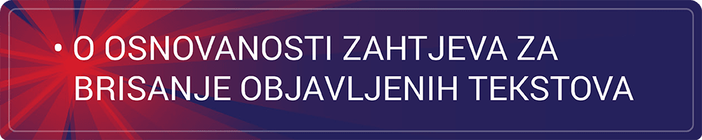 Advokat Ademović je objasnio da ne postoji propisano pravo na zahtjev za brisanje objavljenih tekstova: „Brisanje i eliminisanje iz života pravnih posljedica jednoga krivično pravnog stautusnog aspekta ne podrazumijeva pravo da izbrišete da se nešto desilo„