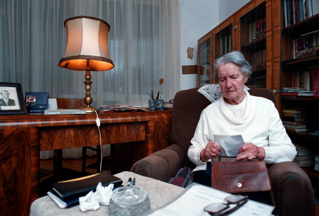 Ona je osamdesetosmogodišnja umirovljena profesorica komparativne književnosti (rođena u Zagrebu, ali u Sarajevu živi preko pedeset godina) koja živi sama.